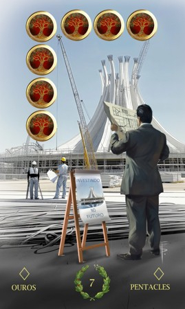 Acompanhando essa energia, temos o Sete de Ouros, um Arcano Menor que reforça o aspecto de recompensa e colheita — especialmente nos temas financeiros, profissionais ou de saúde. No mesmo Tarô, essa carta é representada pela construção de Brasília, um projeto ousado que exigiu planejamento, esforço e fé em um futuro promissor. Assim como nossa capital foi erguida com determinação, você também vem construindo algo sólido, e agora está prestes a colher os frutos desse esforço.